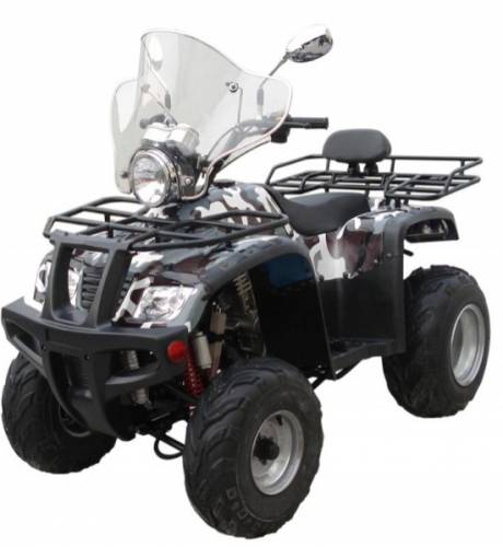 Элитная и сравнительно дорогая модель квадроцикла с лобовым защитным стеклом, с передним и задним багажником. Полный автомат с задней передачей, оснащен приборами с подсветкой, дополнительной фарой, очень прочным пластиком, кроме ел.стартера оснащен дополнительной педалью для пуска двигателя. Колеса на "10" с возможностью увеличения и уменьшения колесной базы. Рабочий "объем двигателя (куб. см) 150сс 4-тактный Объем топливного бака (л) 5 охлажденияе -Воздушное